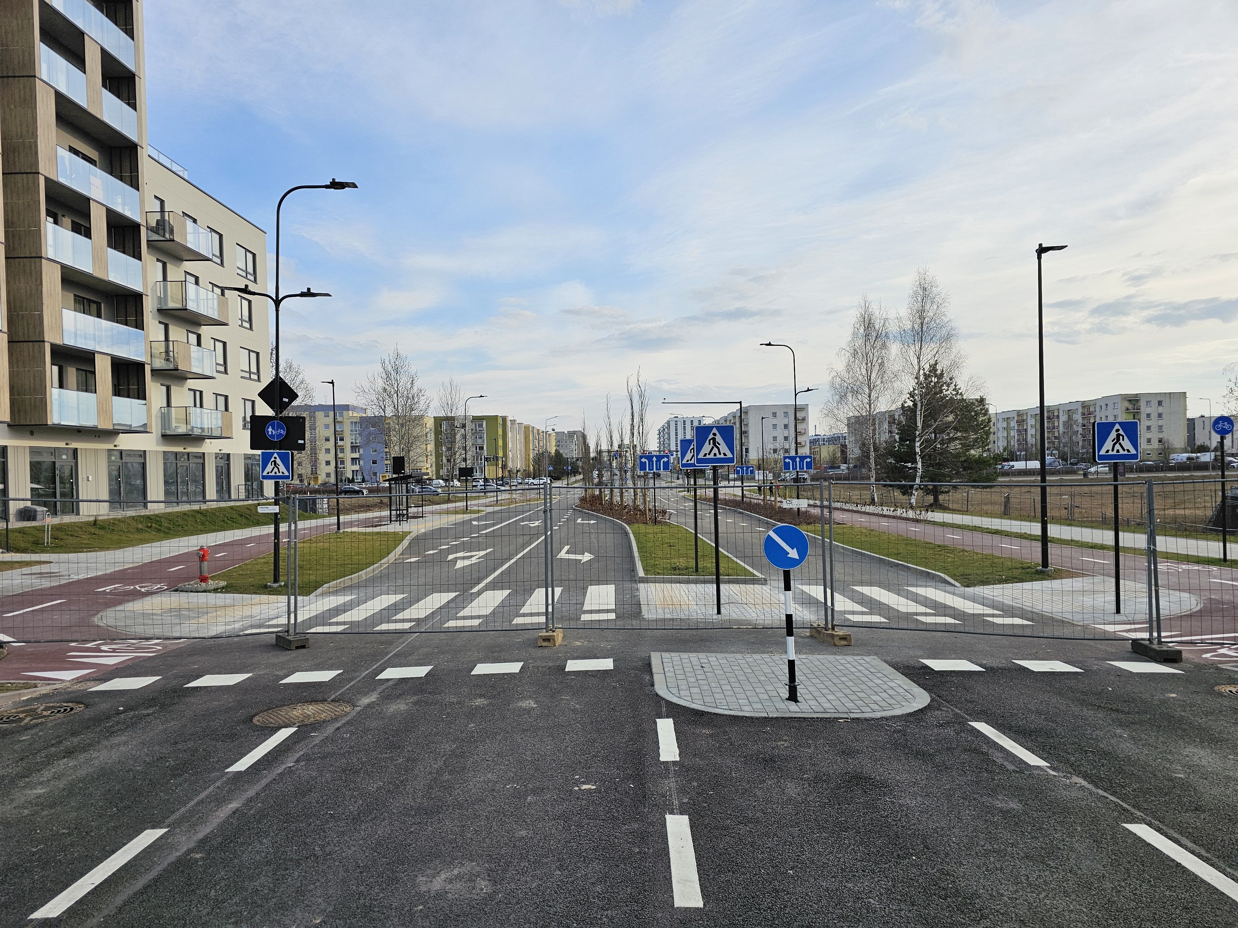 Atkarpa beveik baigta, bet dar pilnai neatidaryta. Karaliaučiaus g. šalia J. Bretkūno g.:
