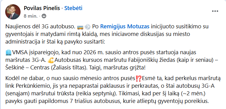 Facebook grupėje FABIJONIŠKĖS kaip tik dabar vienas narys paskelbė pranešimą, kad nuo 2026 m. sausio antros pusės planas yra būtent toks. Raidė į raidę – 3G-A