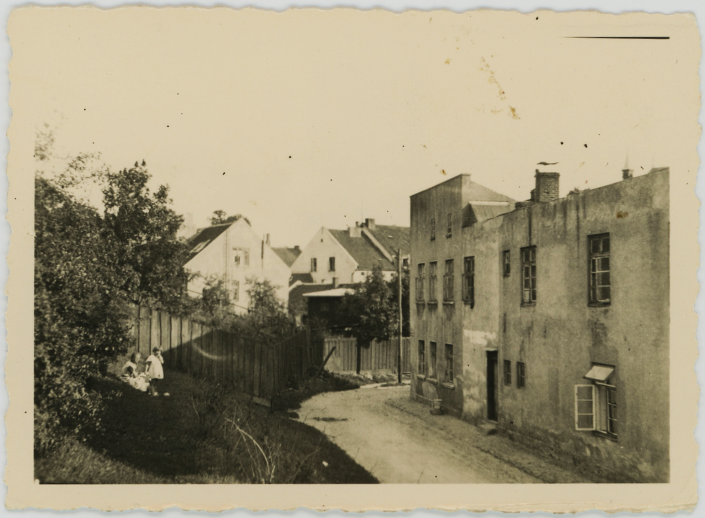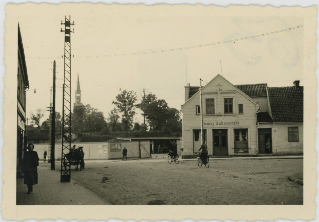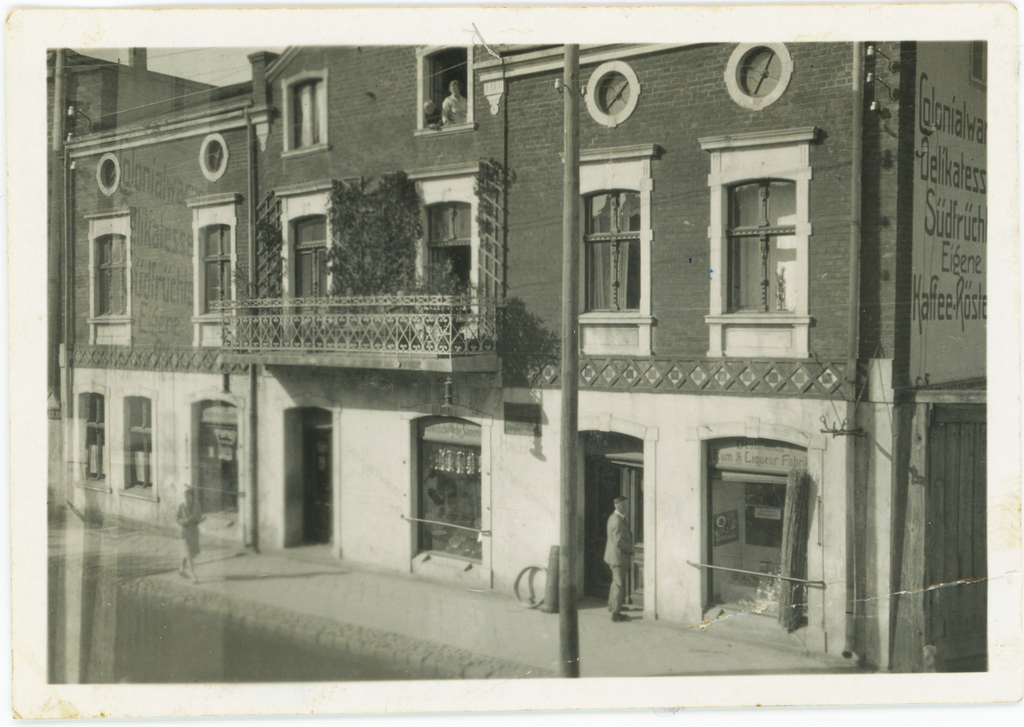 Klaipėda. Vaizdas į A. Eilbergo medienos sandėlį ir Šv. Jono evangelikų liuteronų bažnyčią. XX a. 3-4 deš. Nuotrauka iš iš Klaipėdos apskrities Ievos Simonaitytės viešosios bibliotekos AdM ir Rautenberg archyvų.