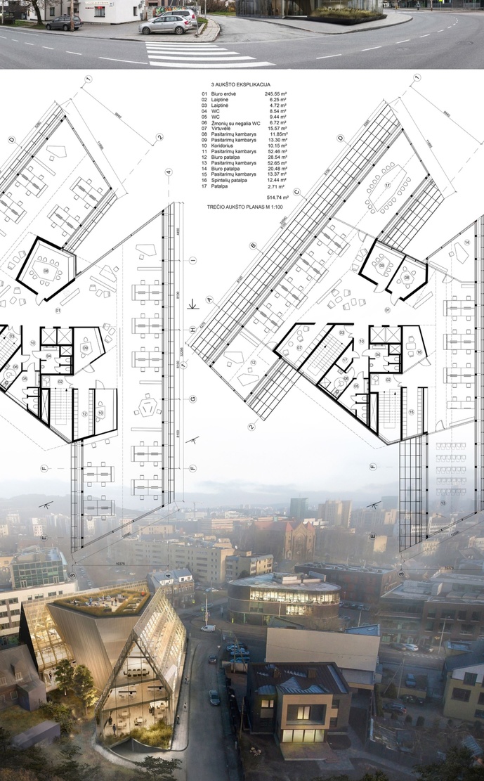 O man ištiesų šitas darbas visai patinka. Nesiimu vertinti ar jis geriausias iš visų, bet bent jau man jis patrauklesnis už antrą ir trečią vietas, kokių man rodos labai nemažai jau Vilniuje prištampuota. Šitas projektas unikalus, atrodo toks permatomas, o kadangi permatomas, tai tikriausiai gerai matysis ir dirbantys jame žmonės, kas mano supratimu yra labai įdomus ir unikalus sprendimas. Atviroje erdvėje dirbantys žmonės, gerai matomi iš gatvės, tai vietai suteiks gyvybės. Šlaitinis stiklinis stogas taip pat vienetinis atvėjis. O iš šito kampo pastatas išvis pasakiškai atrodo: