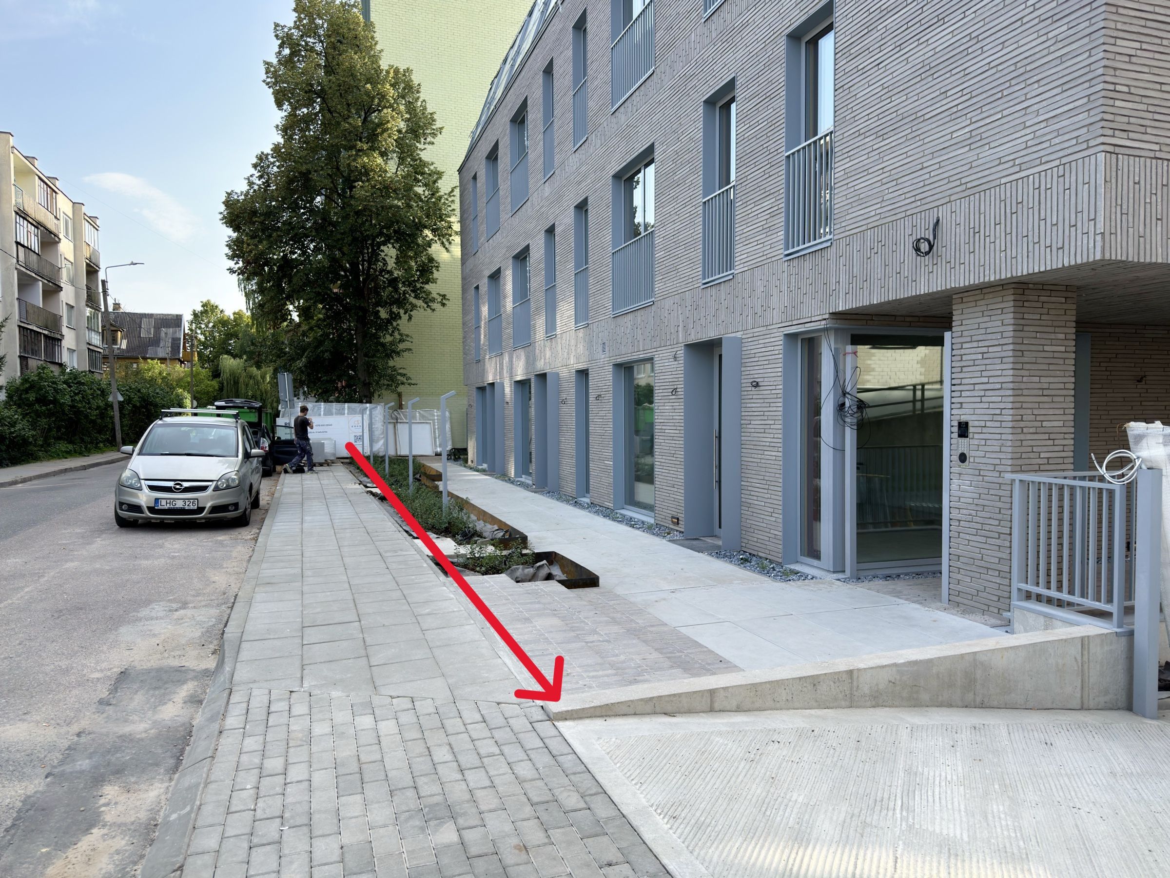 Visi nauji projektai turi panasius bruozus - kazkokie nereikalingi purvynai ir zoles priekyje, laiptai nes nesugeba pastato statyti gatves lygyje, ir dazniausiai kazkokie takai kurie nesusikalba su egzistuojancia infrastruktura.Visiskai nesuprantu kodel tokios nesamones yra daromos jau n metu...