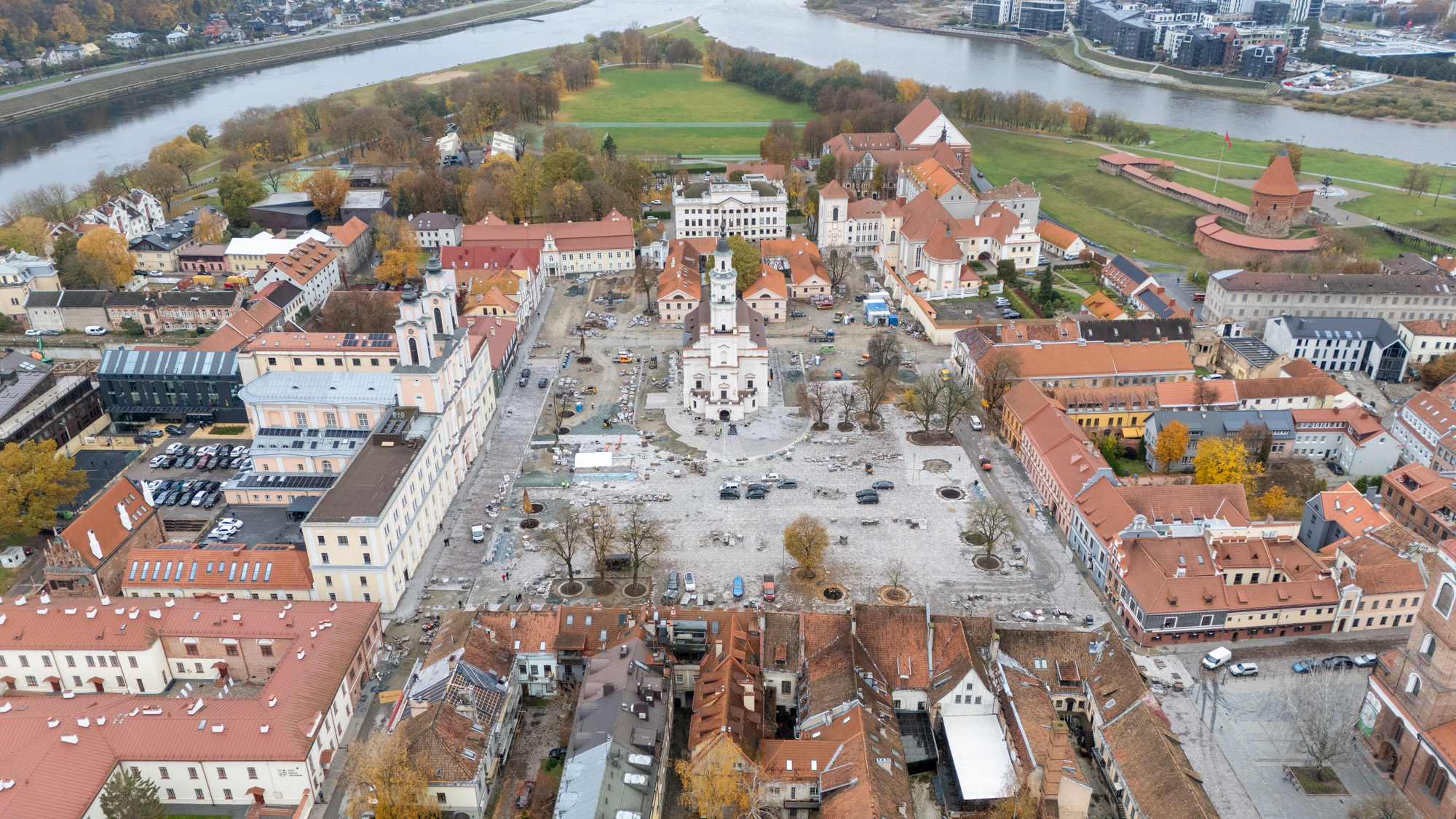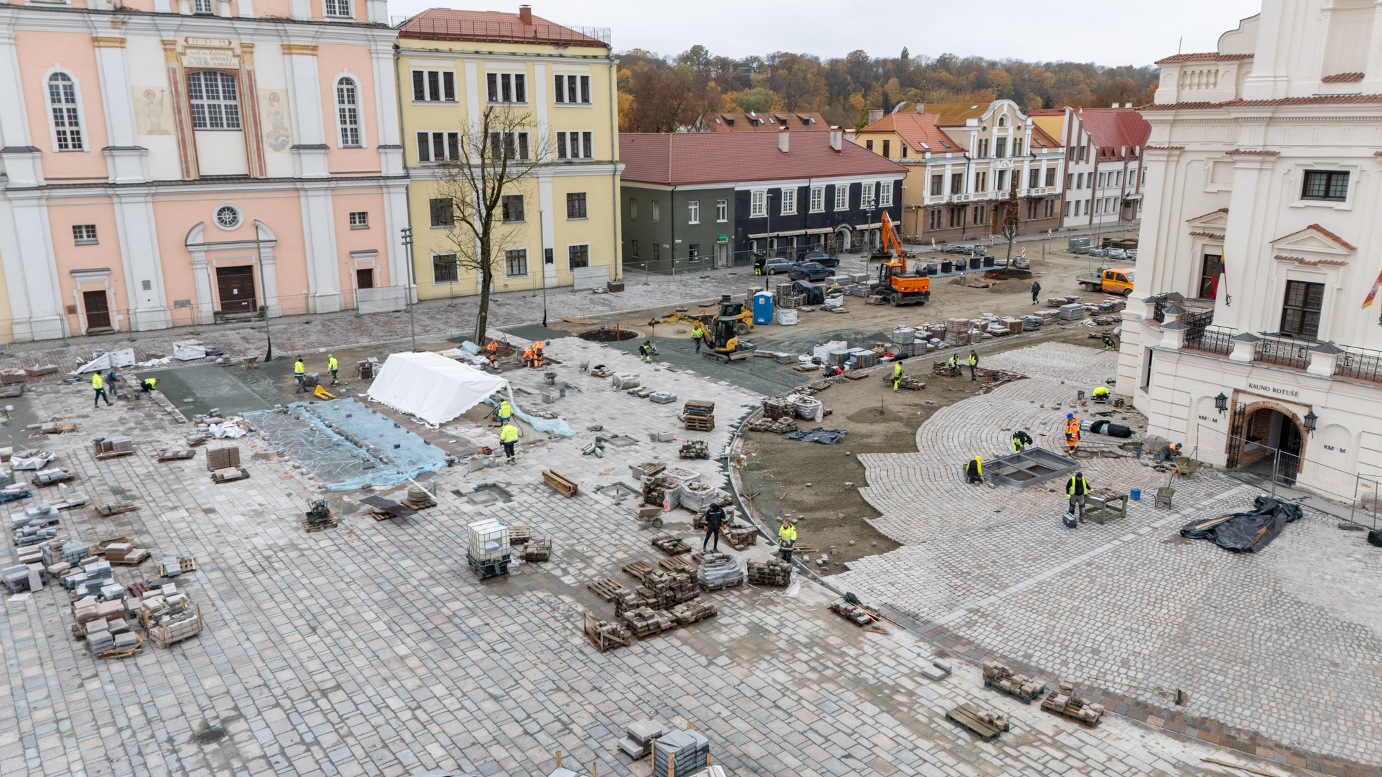 Tikiuosi bent aplink rotušę pilnai spės sudėt grindinį ir liks tik prie Maironio bei link Vyskupijos užbaigt. Dabar panašu jog dalis aikštės bus užtverta šventės metu.