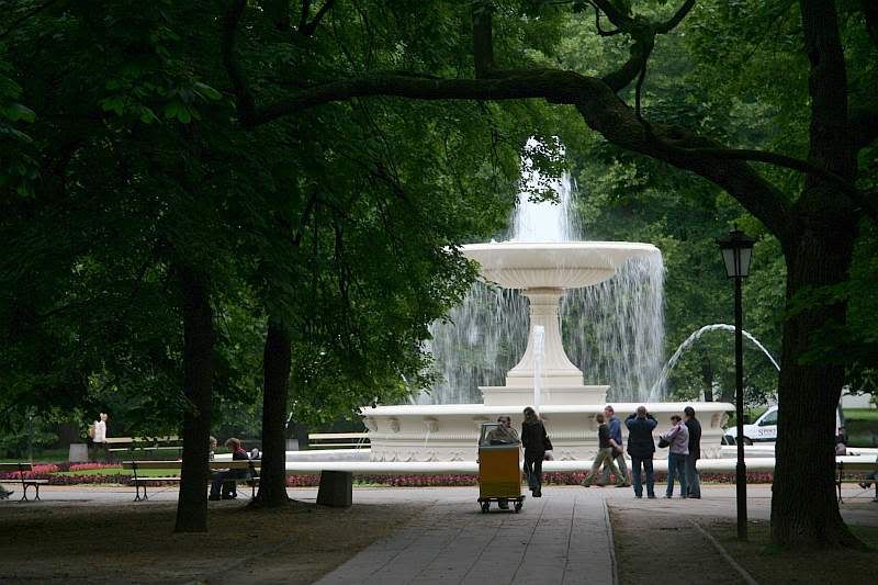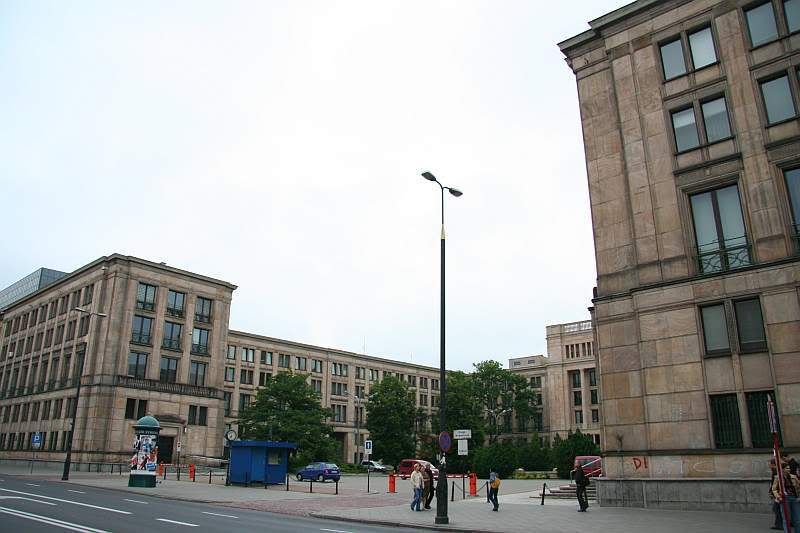 Šalia - 1944 m. vokiečių sugriautų rūmų pamatai. Jau prieš porą metų buvo diskusijos lenkų spaudoje dėl čia buvusių Saksų rūmų atstatymo.