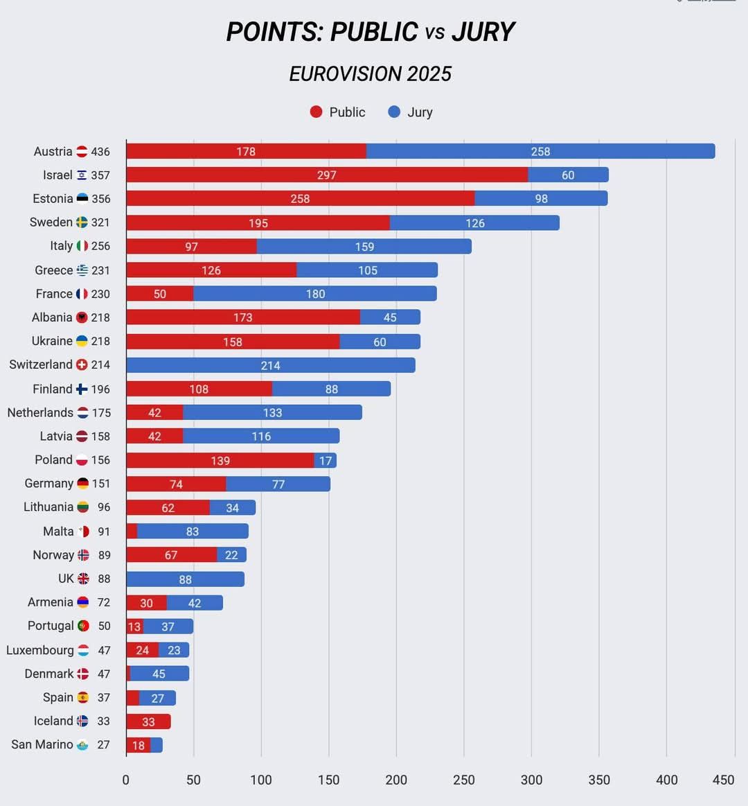 Rezultatus apžvelgiant, ši Eurovizija labiausiai primena 2015 metus. Izraelis susirinko visą, be išimčių, Vakarų Europą, už Estiją balsus atidavė dauguma visos Rytų Europos šalių, o komisijų balsavimą vakar laimėjo Austrija – ir dar kartą net tokie rezultatai nulėmė laimėtoją.