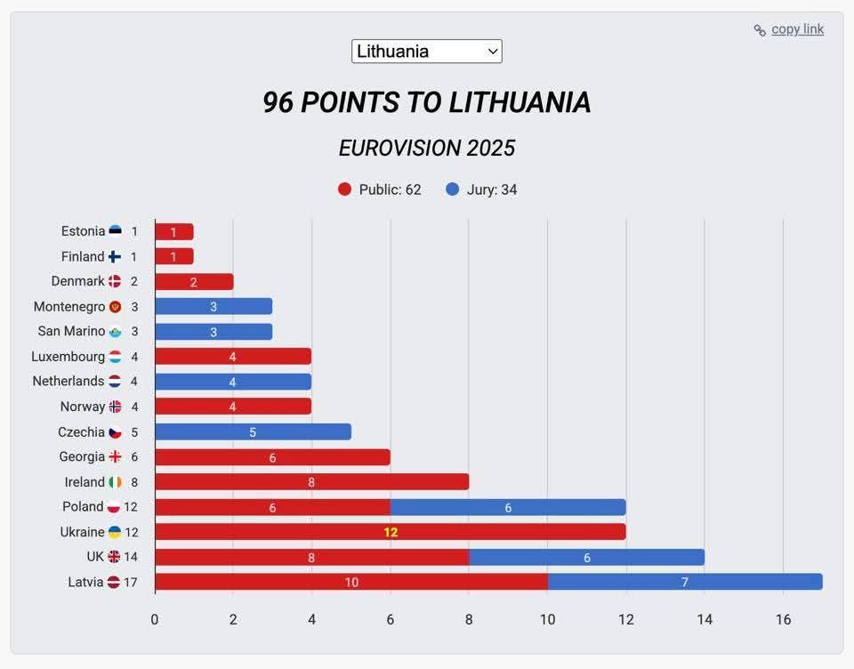 Lietuva apie 15 vietą jau kaip JK gauti 0 žiūrovų balsų.