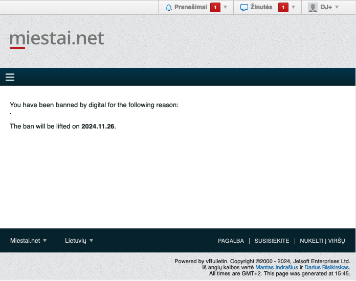 Nelabai išeina dalyvauti forumo nariu kai staigiai ir neaišku už ką esu baninamas.