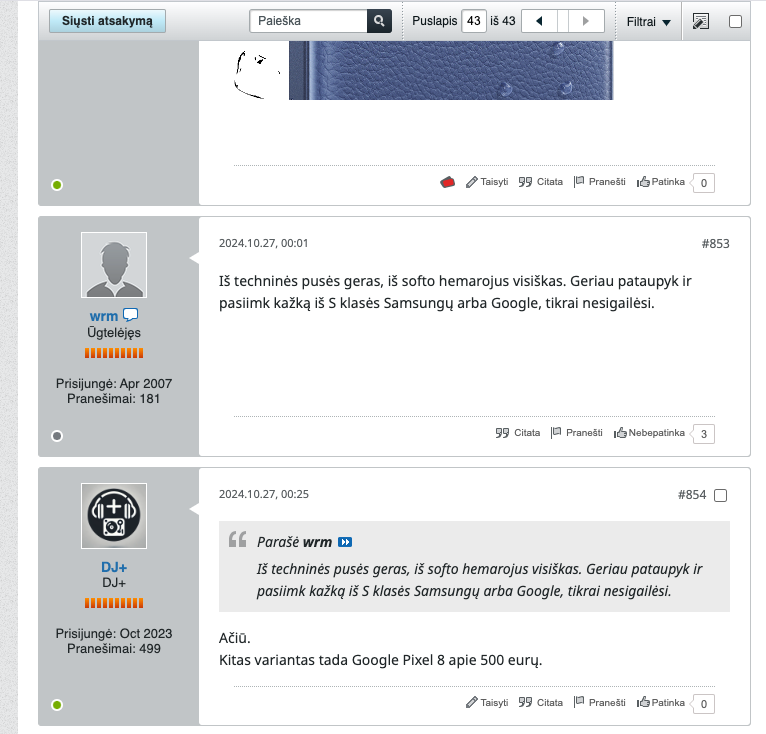 Tai sakyčiau NP2 yra sekantis šioje "flagship killers" kategotijoje. Pažiūrėjus internete reviews ir išbandžius praktikoje, mažai kuo nenusileidžia flagmanams, o kai kur ir lenkia. Pvz žmonos IPhone 15 prasčiau tamsoje fotografuoja nei manasis NP2. Kaip rašo šioje apžvalgoje kur palygina su falgmanais (https://adamlobo.tv/nothing-phone-2-...aomi-huawei/): So if you’re in the market for an Android smartphone that radiates flagship vibes without paying the flagship price tag, THIS IS IT!