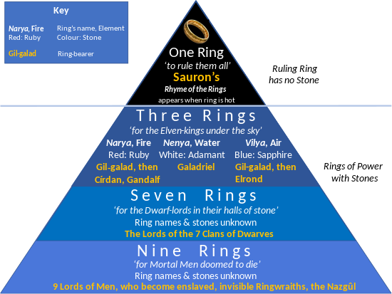 Sauronas žiedus davė žmonėms, elfams ir nykštukams. 9 žiedai buvo 9 nykštukų karaliams, kurios dėl jų rasės gobšumo žiedai visiškai užvaldė ir jie tapo saurono vergai (išskyrus vieną kažkurį).Parašė Sula Rodyti pranešimąĮdomi naujiena ta, kad valdovas Chuilo įteikė savo vasalams žiedus.