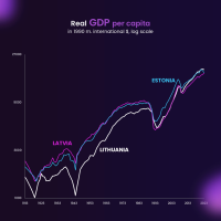Baltijos šalių BVP palyginimas 1913 – 2024 pagal naują Adomo Klimanto daktaro disertaciją Oksfordo universitete. Teigia, kad tai pirmas kartas, kai į vienodą ir tarptautiniu mastu palyginamą...