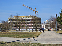 Dar prie to paties pastato Čečėnijos aikštėje statybų eiga per mašinos langą: