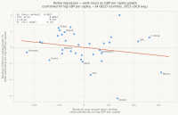 Reikėtų tuomet kontroliuoti BVP per capita šitoje regresijoje, nes neturtingos šalys auga labiau dėl to nes yra neturtingos ir jos tiesiog pasiveja. Reiškia ši regresiją rodytų kiek stipriai...