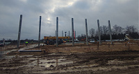 Mažeikių sporto centro statybvietėje montuojamos kolonos sporto salės zonoje